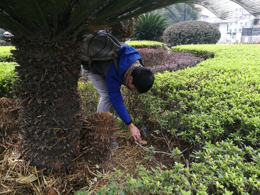在本次活动中,一支部的学生党员主要清理凉亭周边,停车处绿化带则由二支部学生党员负责。学生党员们按照安排,手持塑料袋和工具筷子,热情洋溢、精神饱满,全身心投入劳动当中。党员们打着雨伞、弯下身体,用手中的工具筷把垃圾捡起装袋,不多时就装满了手中的几个垃圾袋。