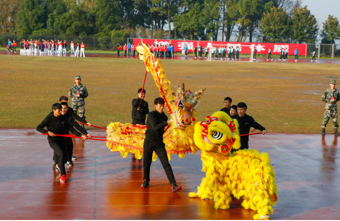 伴随着铿锵有力的音乐声,比赛在精彩的龙腾狮舞表演中拉开了帷幕,体育学院舞龙表演《金狮戏飞龙》点燃了全场激情。紧接着,彩旗方队、裁判员方队、运动员代表队在现场热烈的欢呼声中依次入场。他们喊着整齐的口号,踏着坚定的步伐,昂首挺胸、精神抖擞,展示出理工人良好的精神面貌。