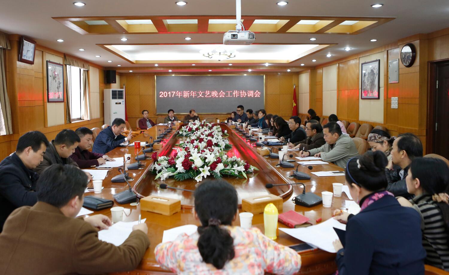 校园网讯 11月1日下午,yL23411永利集团官网登录2017年新年文艺晚会工作协调会在办公楼319会议室召开,党委副书记邱绍雄,宣传部、各党总支(二级党委)负责人、晚会导演组成员与会。会议由党委副书记邱绍雄主持。