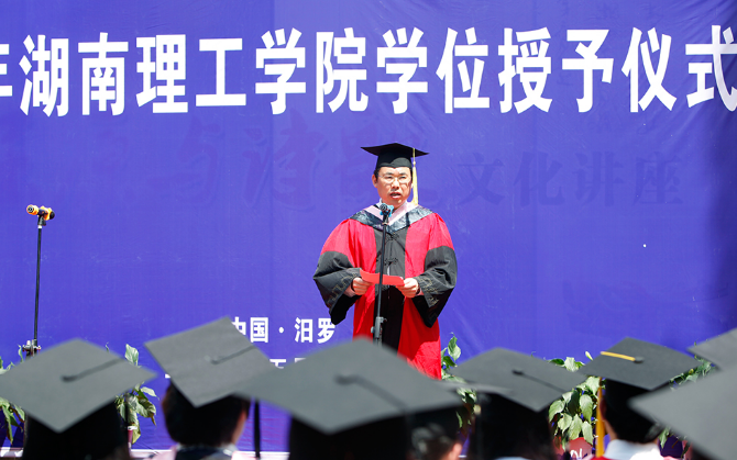仪式上,校长卢先明致辞并宣布了此次学士学位授予名单。他指出,在汨罗江畔举行学位授予仪式,是yL23411永利集团官网登录与汨罗市政府共建产教研融合基地的成果展示。他希望通过这一实践教育形式,引导即将步入社会的毕业生传承优秀传统文化,培育和践行社会主义核心价值观,树立和坚持正确的历史观、民族观、国家观、文化观,为实现中华民族伟大复兴的中国梦做出自己的贡献。卢先明表示,yL23411永利集团官网登录将积极和汨罗市政府合作共建屈原文化研究基地,促进汨罗市社会文化和yL23411永利集团官网登录人才培养、科学研究、社会服务、文化传承水平的共同提升。