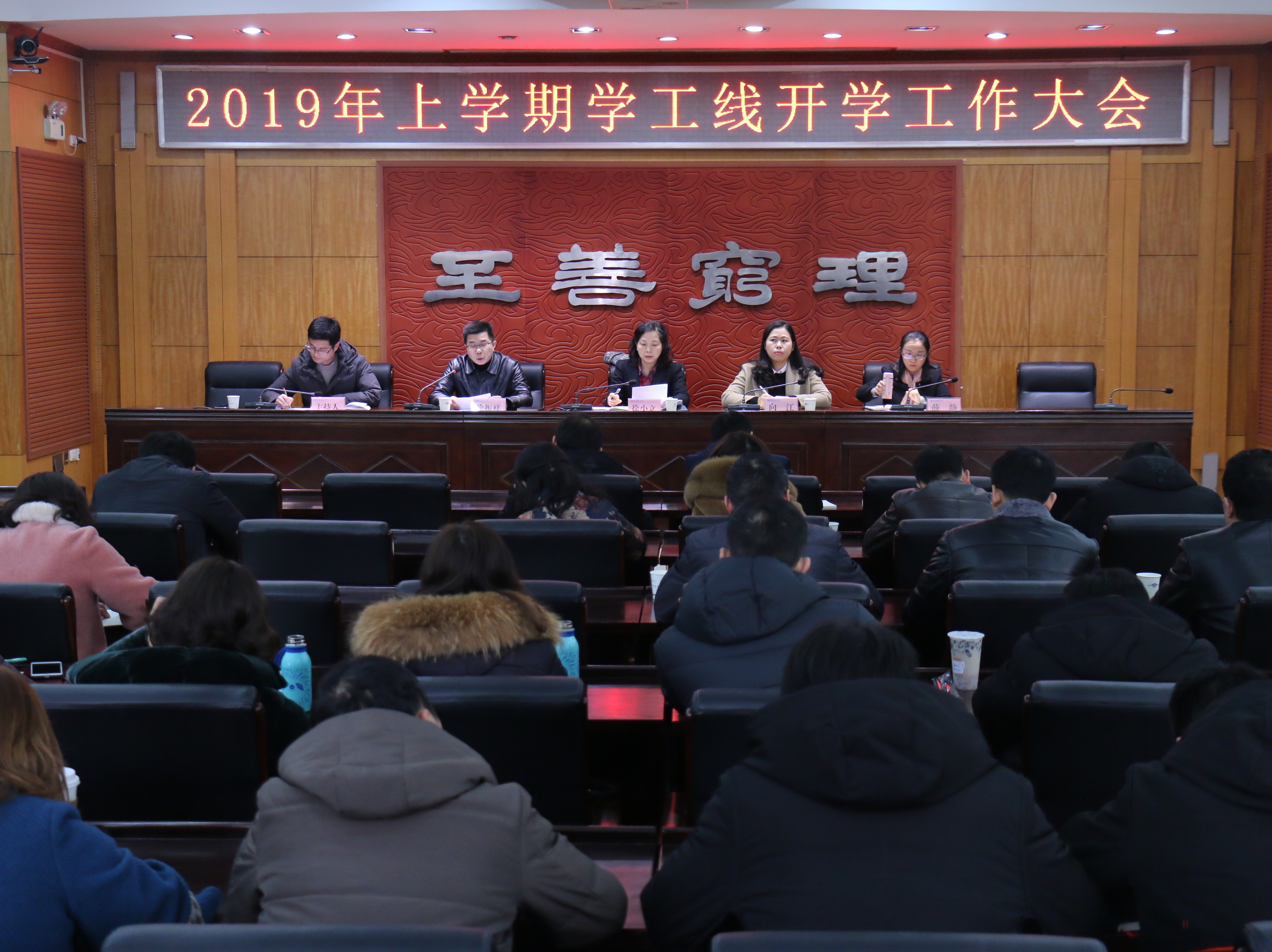 2月22日下午,2019年上学期学工线开学工作会议在办公楼214会议室举行,副校长徐小立,校党委委员、统战部长向江出席,学工部、团委全体人员,各学院党总支副书记、辅导员,南湖学院分管学生工作负责人、各系总支书记、辅导员参加了会议。