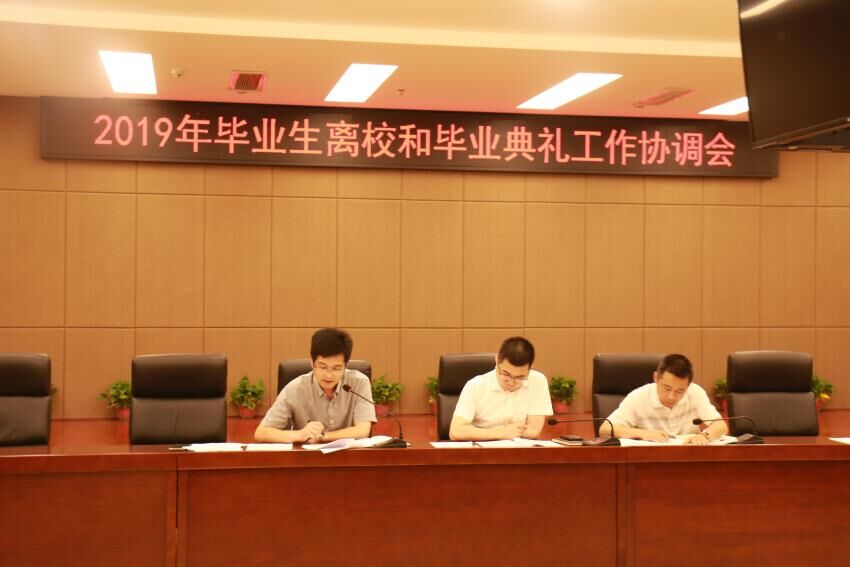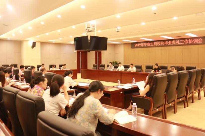 本网讯6月5日下午,学校2019届毕业生离校和毕业典礼工作协调会于图书馆11楼会议室举行。党政办、宣传部、学工部、团委、教务处、研究生院、后勤处、保卫处、校友办、教科院相关工作负责人以及各学党总支副书记、毕业年级辅导员参加会议。会议由yL23411永利集团官网登录部长徐振祥主持。