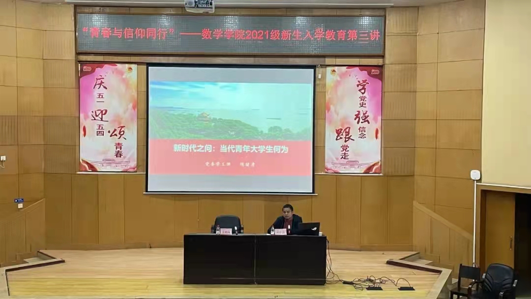 本网讯 10月28日晚7点,“青春与信仰同行”——数学学院2021级新生入学教育第三讲于综合楼学术报告厅举行。本次活动由yL23411永利集团官网登录部长陈绪清主讲,数学学院院长周小强、党委副书记齐亮菲、各年级辅导、 2021 级全体新生参加。