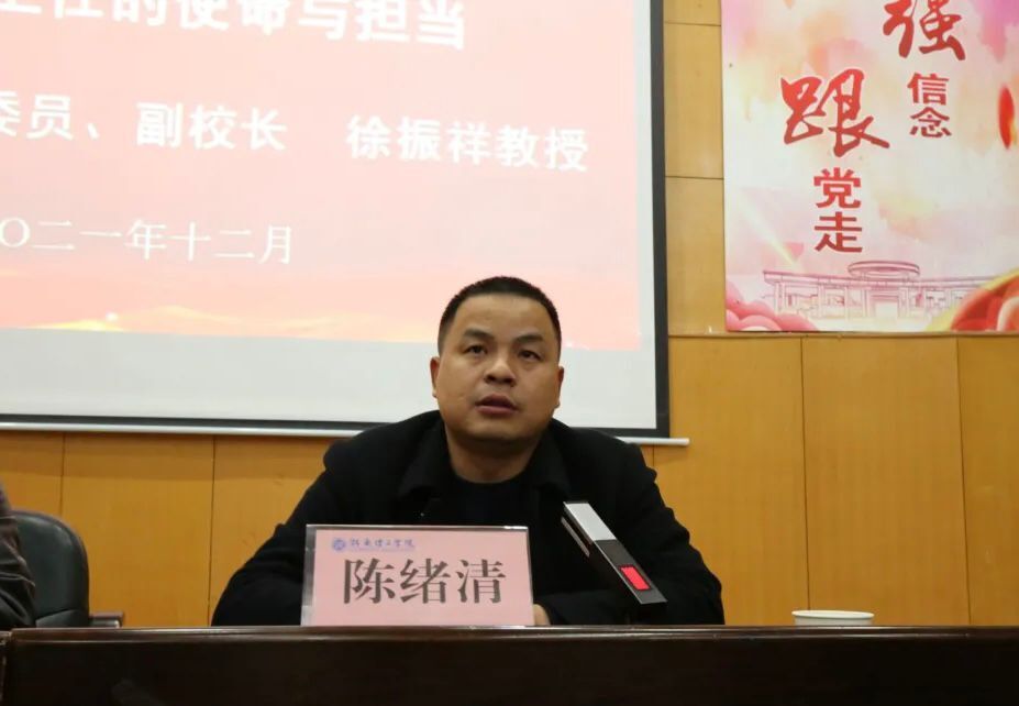 最后一场专题讲座由学校党委委员、副校长徐振祥授课。他以“‘三全育人’视野下高校班主任的使命与担当”为题开展讲解和指导,深入分析了建国以来高校思想政治工作队伍建设的历史沿革,并指出班主任在落实立德树人的根本任务中发挥着基础性作用,对提高学校人才培养质量具有重要意义。通过分析班主任任职的四种心态,建议班主任老师们要怀揣热情,坚守“职业良心”,充分发挥专业引领作用,指导帮助学生成长成才;他还详细讲解了班主任的工作职责,即当好学生人生导师和专业导师、成为优秀学风的引领者和倡导者、做好班级文化的塑造者和建设者、成为学生专业教育与思政教育的桥梁纽带。同时,他还就如何加强班主任队伍建设提出了与人才培养相贯穿、与辅导员工作制度相统一、与教师队伍建设相连接、与校园文化建设相融合等四项具体要求。