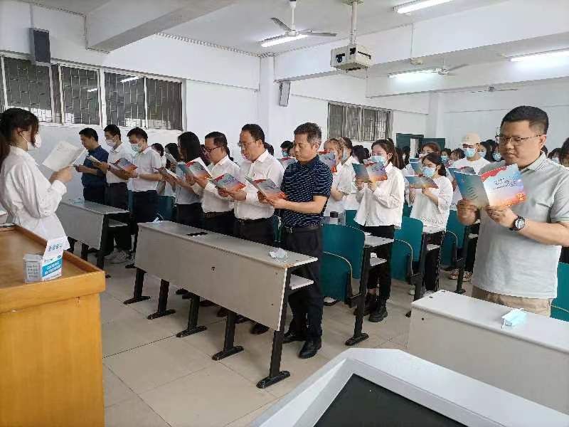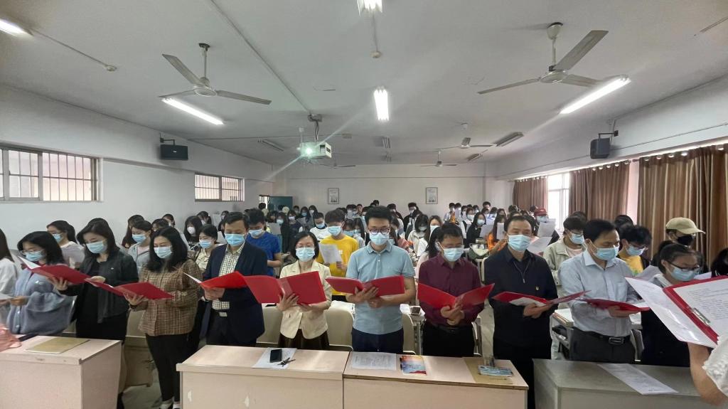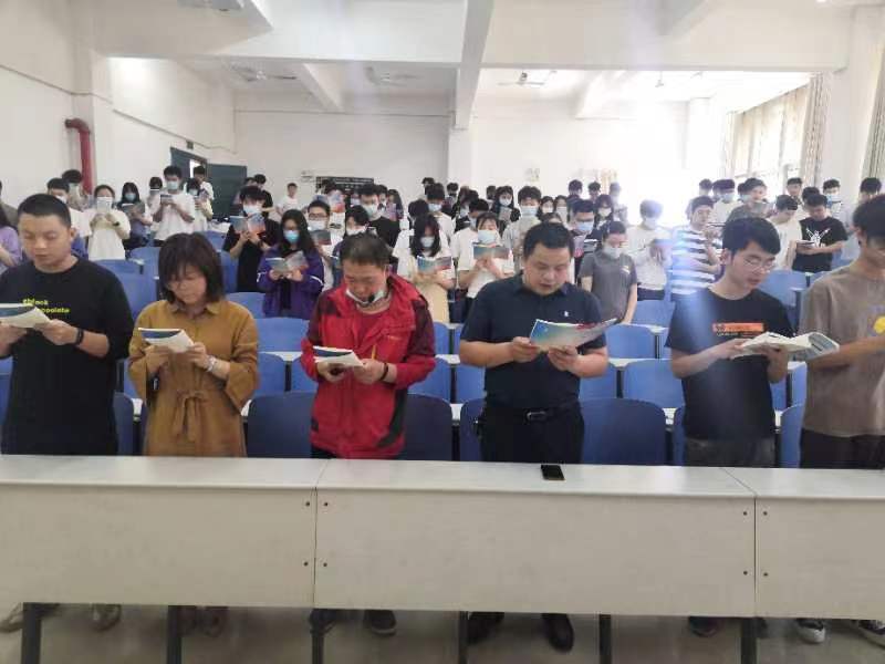 国旗广场上,支部党员们与青年学子共唱国歌与共青团团歌,重温入团誓词,与学子们青春共勉。教室里,支部党员与青年学子们齐声诵读红色经典,共抒爱国情怀,与学子们同忆峥嵘岁月。
