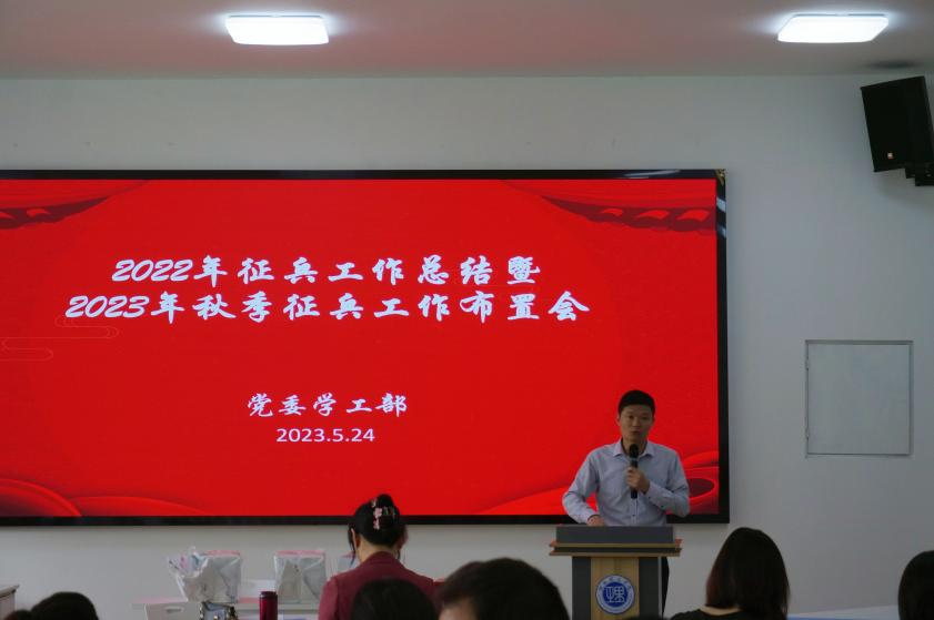 5月24日上午,学校2022年征兵工作总结表彰暨2023年秋季征兵工作布置会在5105召开,党委武装部全体工作人员、各院(系)学生工作负责人、武装专干参加。