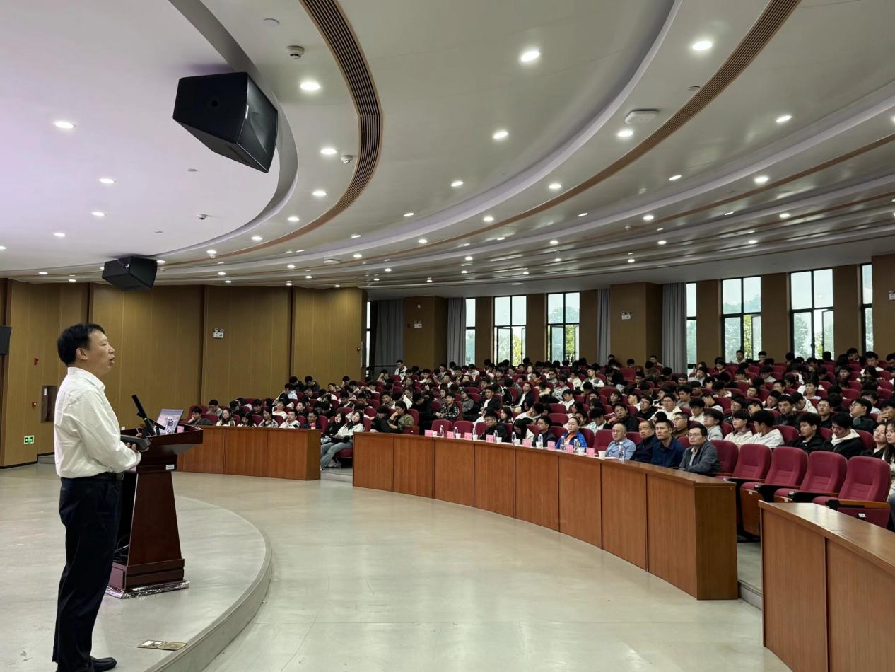 曾祥君校长以“我们的大学”为切入点,与新生展开深入交流。他回顾了学校的办学历程,展示了学校丰硕的科研成果,并着重强调学校始终秉持“学生为本、教师为本、发展为本”的办学理念。在谈到“我们的目标”时,他明确提出要培养德智体美劳全面发展的社会主义建设者和接班人。而在“我的大学”板块,他细致分析了大学生活的独特特点与主要任务,殷切寄语新生要学会自我管理、自我服务、自我教育、自我监督,在大学这片广阔天地中茁壮成长。