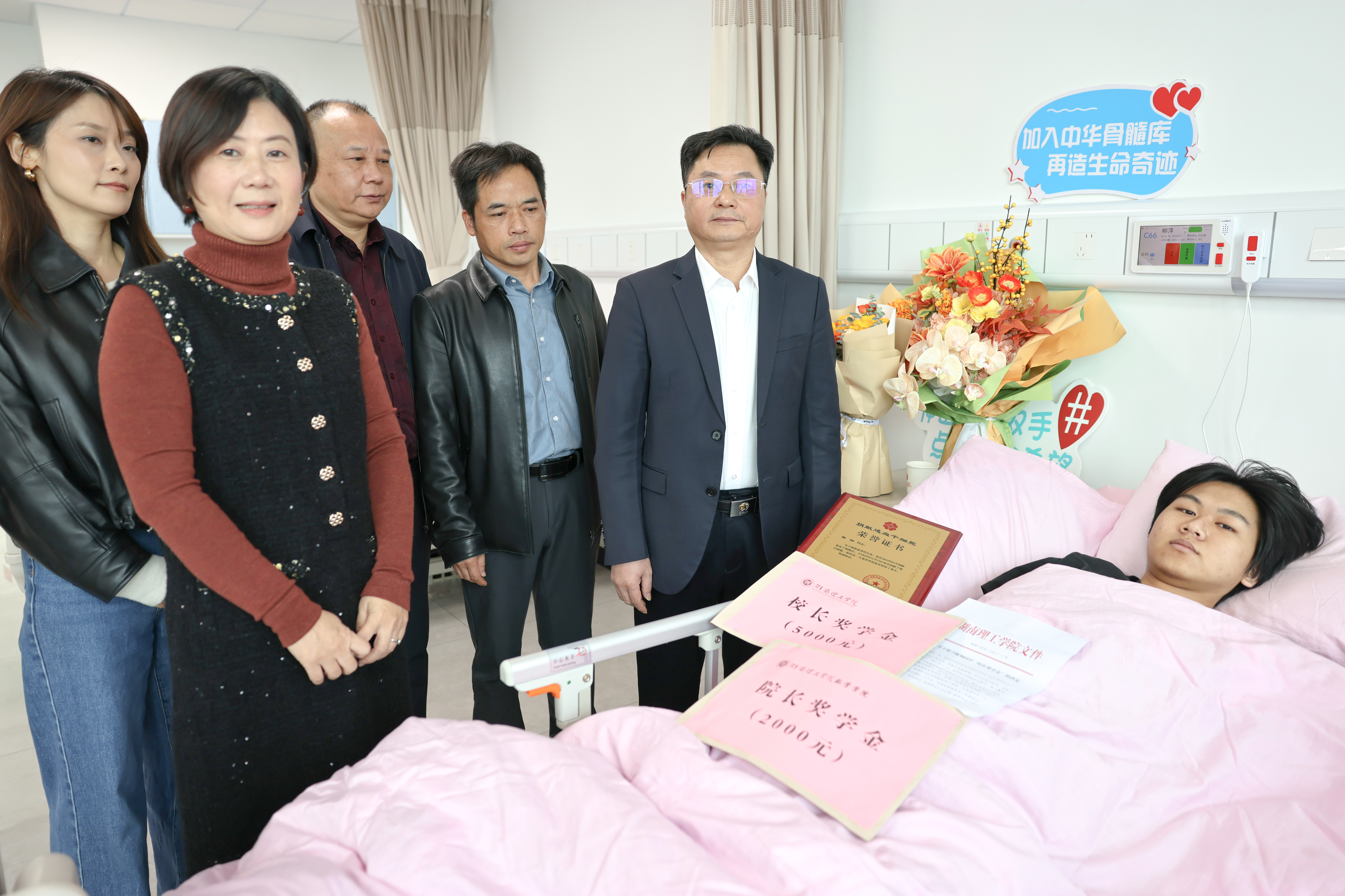 副校长汤小红在看望陈翔同学时介绍,学校已有46名师生完成造血干细胞捐献,数量居全省高校前列。近年来,学校坚持“爱心育人”办学特色,持续加强生命教育与公益实践,引导青年学生树立优良的道德品行和社会责任感。