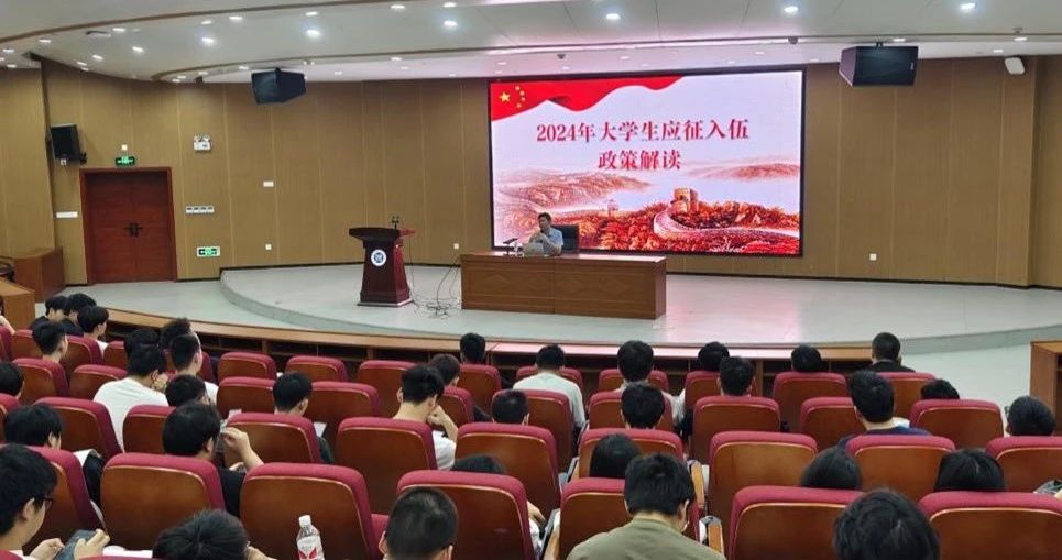 校园网讯 为加强征兵政策宣传,进一步贯彻落实国家大学生征兵入伍政策,激发大学生参军入伍热情,鼓励和引导毕业生踊跃报名应征入伍, 5月16日下午,由学校党委武装部主办,机械工程学院办承办的秋季征兵政策宣讲会在17118举办,机械学院党委副书记李凯就2024年秋季征兵政策,征兵工作程序,体检政考要求等做了细致解读,来自各学院的100余名毕业班学生参加。